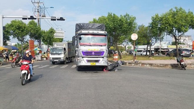 Cú va chạm khiến người phụ nữ ngã ra đường bị thương, được người dân đưa vào bệnh viện cấp cứu. Riêng chiếc xe máy bị bánh xe tải chèn lên.