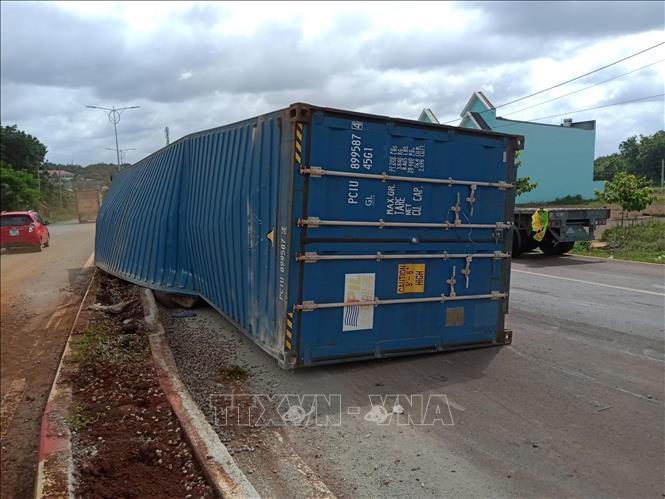 Tương tự, khoảng 3h30, chiếc xe container BKS 51C 252.86 kéo rơ-mooc BKS 51R 14581 (chưa rõ danh tính lái xe) trong lúc vào khúc cua trên đường ĐT.741 hướng đi từ TP Đồng Xoài đến thị xã Phước Long (tỉnh Bình Phước) thì mất lái, thùng container từ rơ-mooc văng xuống lòng đường, đầu xe bị lật nhào.