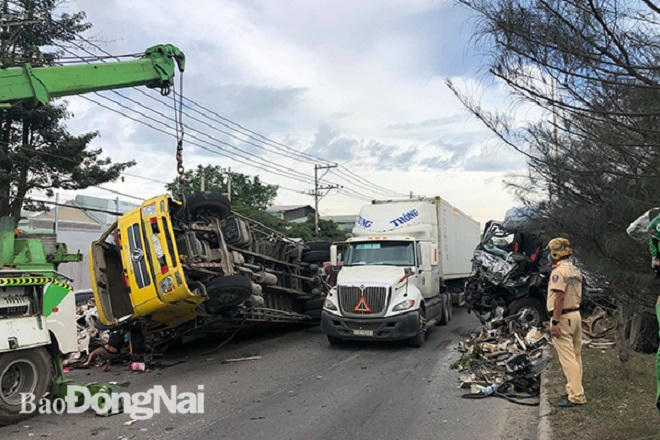 Tại hiện trường, 2 phương tiện nằm chắn ngang hết làn xe ô tô trên quốc lộ 51, phế liệu trên xe tải đổ tràn xuống đường khiến giao thông ùn tắc nghiêm trọng ở cả hai hướng đoạn qua khu vực này. Nhận được tin báo, lực lượng chức năng cũng đã có mặt tại hiện trường để tiến hành điều tra làm rõ nguyên nhân vụ tai nạn.