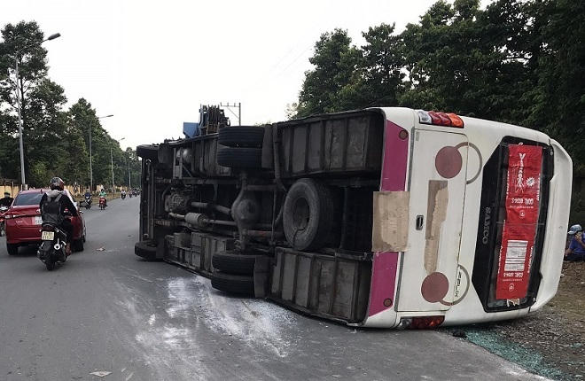 Xe khách lật nghiêng, 4 người bị thương