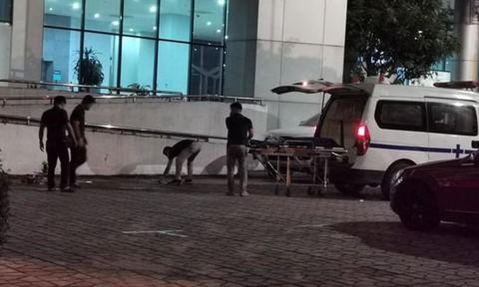 Hình ảnh hiện trường cho thấy, người tử vong mặc quần ngắn, nằm ngay bánh trước của chiếc xe ô tô màu trắng đậu trước lối lên xuống của tòa nhà.