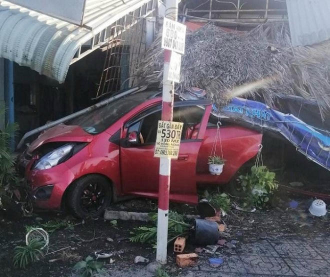 Tại đây, xe ô tô tông 3 chiếc xe máy của khách đang uống cà phê và làm bị thương nữ chủ quán. Sau đó, “xe điên” lao đi chạy một đoạn dài gần 100m rồi tông sập quán cà phê và một mái hiên nhà dân.