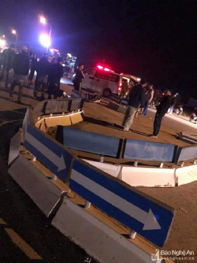 Thời điểm trên, 3 người đàn ông ngồi trên 1 xe máy mang BKS 38 M1 -151.89 đang lưu thông từ ngã tư thị trấn Cầu Giát xuống Quỳnh Bá. Khi qua trụ sở xã Quỳnh Hồng khoảng 20m xe máy bất ngờ tông thẳng vào vòng xuyến đặt giữa Quốc lộ 48B.