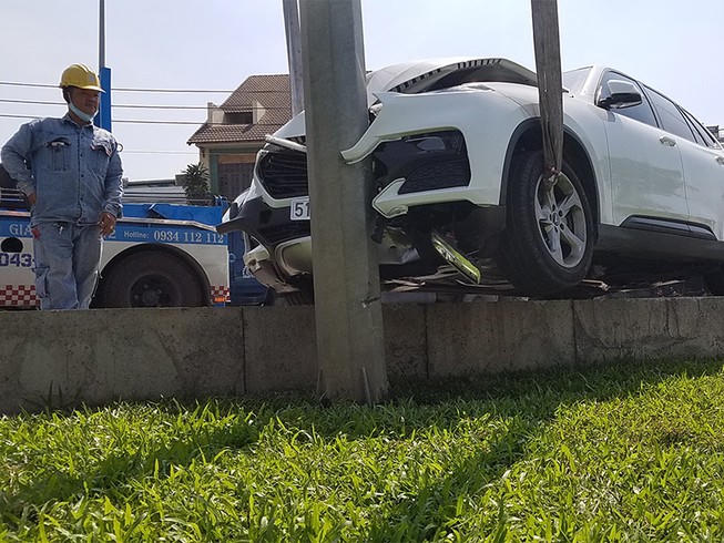 Chiếc xe chỉ dừng lại sau khi tông trúng cột điện chiếu sáng gần đó. Cú tông ở tốc độ cao khiến chiếc xe biến dạng, đầu xe dính chặt vào cột điện. Nữ tài xế được người dân hỗ trợ đưa ra ngoài.