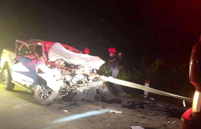 Xe bán tải biến dạng, 1 người tử vong, 3 người bị thương. |