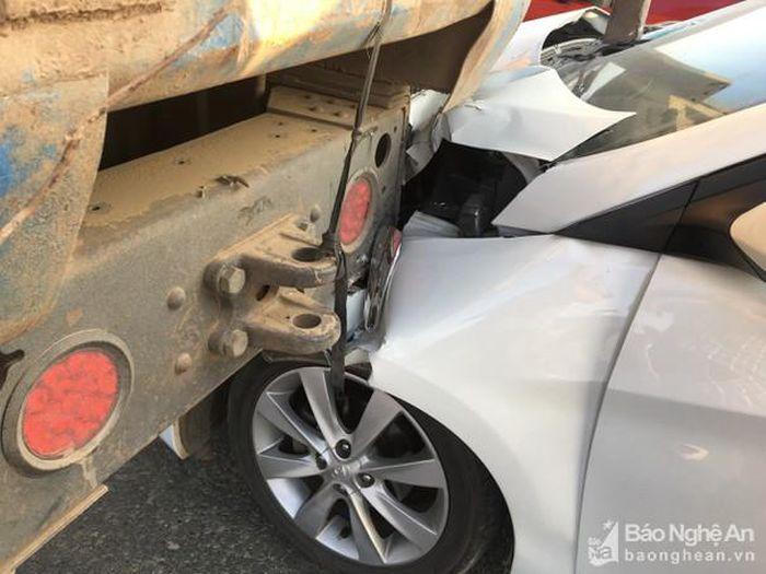 Thời điểm trên, xe ô tô tải chở keo BKS 37C - 368.76 đang lưu thông trên Quốc lộ 7A hướng Đô Lương - Yên Thành (tỉnh Nghệ An). Khi đến ngã tư trên, xe tải dừng đèn đỏ thì bị ô tô màu trắng 5 chỗ BKS 37A - 784.XX đã bất ngờ đâm vào đuôi phía sau.