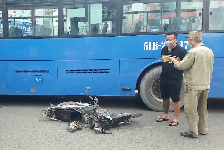 Khi đến giao lộ Phạm Đình Hổ - Hậu Giang - Tháp Mười (phường 2, quận 6), xe buýt va chạm với xe máy do người đàn ông khoảng 40 tuổi cầm lái.