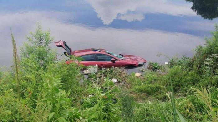 Chiếc xe mất lái lao thẳng xuống sông. |