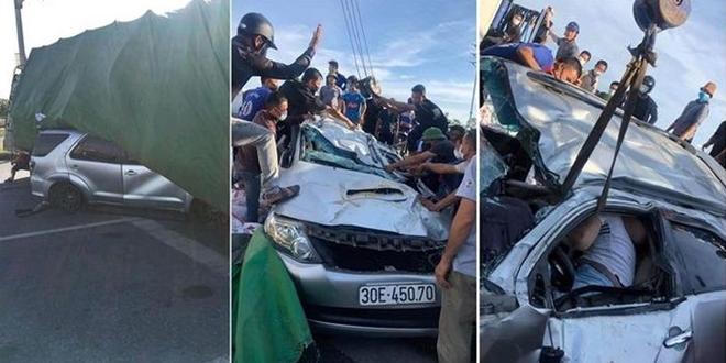 Thời điểm trên, ô tô tải mang BKS 89C-102.58 tông ngang chiếc xe tải chở cám mang BKS 36C-101.29, khiến chiếc xe này bị lật. Cùng lúc này, ô tô 7 chỗ mang BKS 30E-450.70 đang dừng chờ đèn đỏ thì bị chiếc xe tải BKS 36C-101.29 lật ngang đè trúng.
