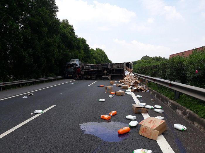 Xe tải lật ngang đường sau va chạm, 1 người tử vong