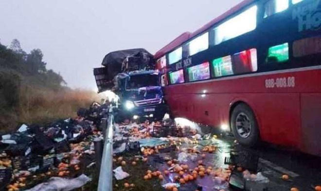 Theo một số nguồn tin thì nguyên nhân tai nạn do xe khách đi lấn làn nên đã đâm vào xe tải.
