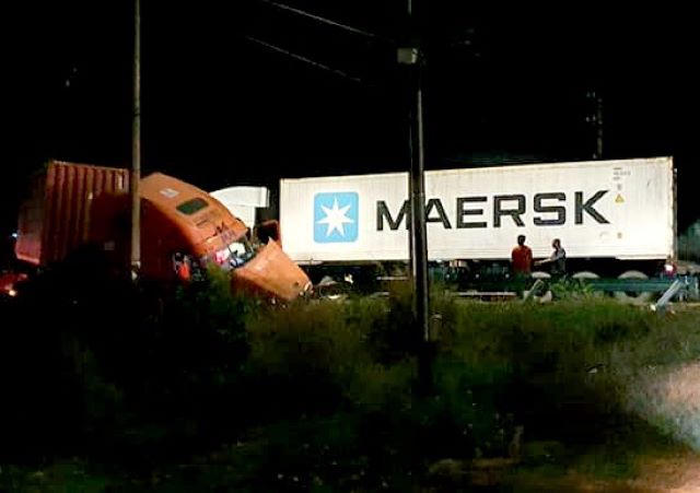 Đánh lái tránh xe máy qua đường ẩu, xe đầu kéo đâm phải container