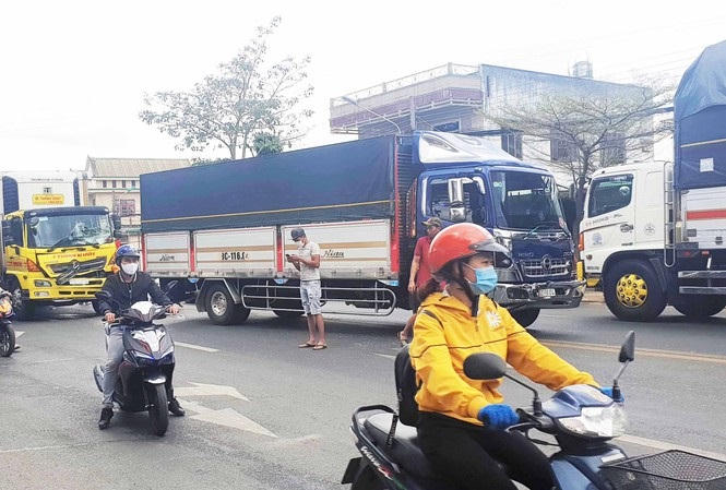 Vào thời điểm trên, người đàn ông điều khiển xe máy bất ngờ băng ngang QL1. Tài xế điều xe đầu kéo phải đánh lái tránh khiến phương tiện lao sang bên kia đường. Xe đầu kéo sau đó tông vào một xe container đang chạy theo hướng ngược lại.