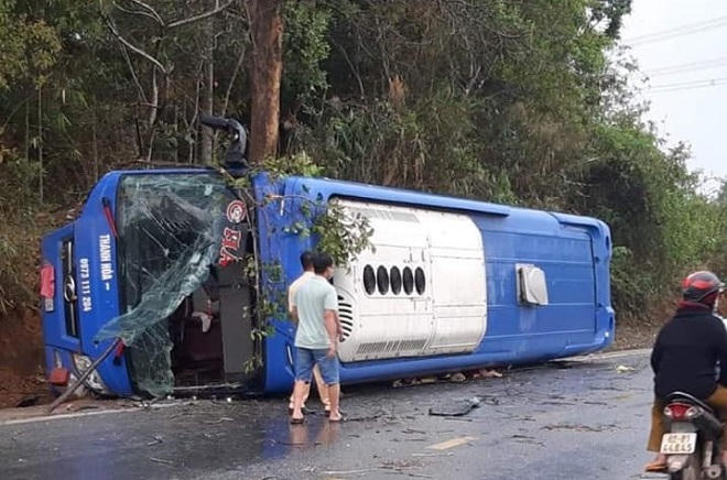 Trạm CSGT huyện Ngọc Hồi (Phòng CSGT tỉnh Kon Tum) cho biết, khoảng 16h, xe khách giường nằm BS 36B – 034.xx di chuyển trên Quốc lộ 14, khi đến địa phận xã Đắk Dục (huyện Ngọc Hồi) chiếc xe bất ngờ mất lái rồi lật ngửa ra đường. Trên xe lúc này có khoảng 19 hành khách và nhà xe.