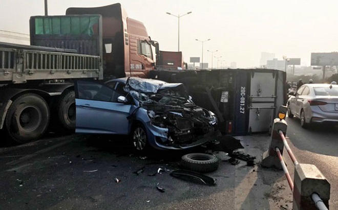 Khoảng 15h50, trên cầu Thanh Trì (đoạn qua quận Hoàng Mai, Hà Nội) xảy ra vụ va chạm giữa 5 phương tiện, gồm 2 xe đầu kéo, 1 xe tải và 2 ô tô du lịch. Các xe này đi cùng chiều, hướng Gia Lâm - Hoàng Mai.