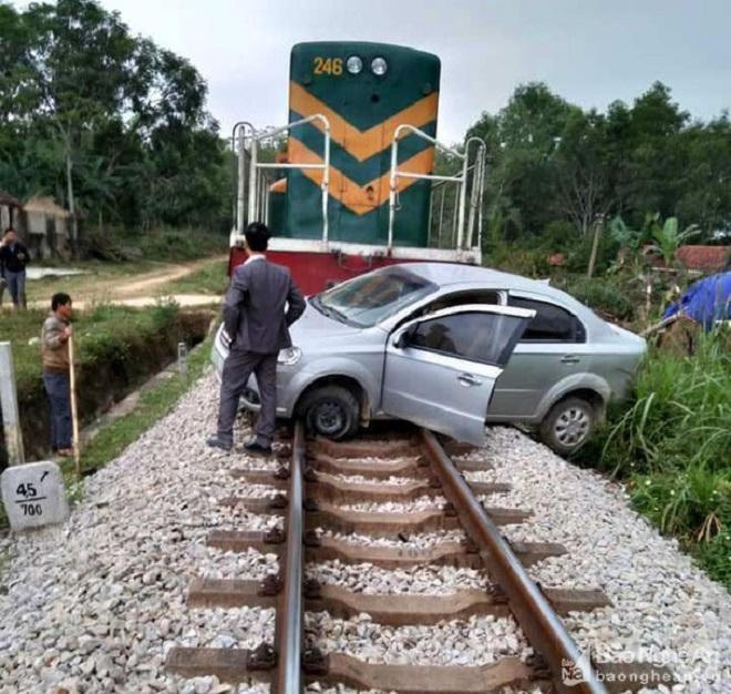 Vào thời gian trên, tàu hàng số hiệu 0320 lưu thông hướng Vinh - Hà Nội khi đến Km 249+620 địa bàn xóm 2, xã Quỳnh Tân thì bất ngờ chiếc xe ô tô 4 chỗ màu trắng BKS 37A -69915 do Hồ Ngọc Thắm (trú xóm 2, xã Quỳnh Tân) điều khiển băng qua đường sắt khiến va chạm xảy ra. Xe ô tô bị tàu hỏa đâm văng sang bên kia đường.