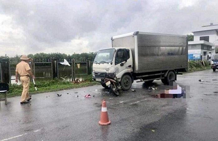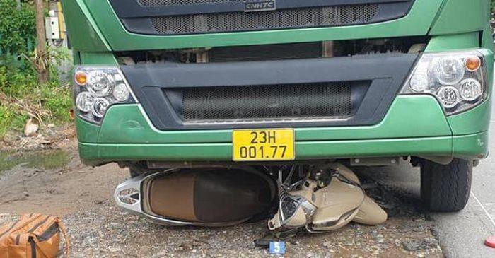 Cú va chạm mạnh khiến người đàn ông đi xe máy ngã xuống đường, mũ bảo hiểm văng ra, tử vong. Tại hiện trường, chiếc xe máy cắm chặt vào đầu xe tải, phần đầu xe máy nát bét, xe tải cũng bị hư hỏng phần đầu.