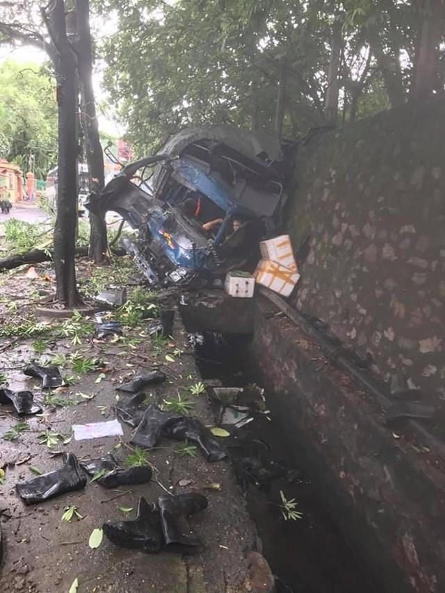 Xe tải mất phanh tông vào tường, tài xế và 2 người bị thương