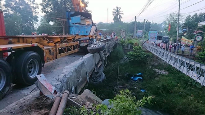 Khi đến cầu Bình Sơn (huyện Long Thành), xe container này bất ngờ mất lái tông vào thành cầu rồi đâm xuống suối. Tại hiện trường, một đoạn thành cầu bị container tông gãy nát. Vụ tai nạn khiến đầu xe container bị hư hỏng nặng, giao thông bị gián đoạn gây kẹt xe kéo dài hàng cây số ở cả hai đầu cầu.