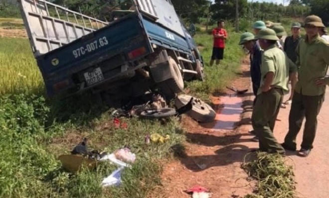 Hậu quả, vụ tai nạn khiến bà T tử vong trên đường đi cấp cứu. Tại hiện trường, chiếc xe máy hư hỏng nặng, xe tải lao xuống ruộng.