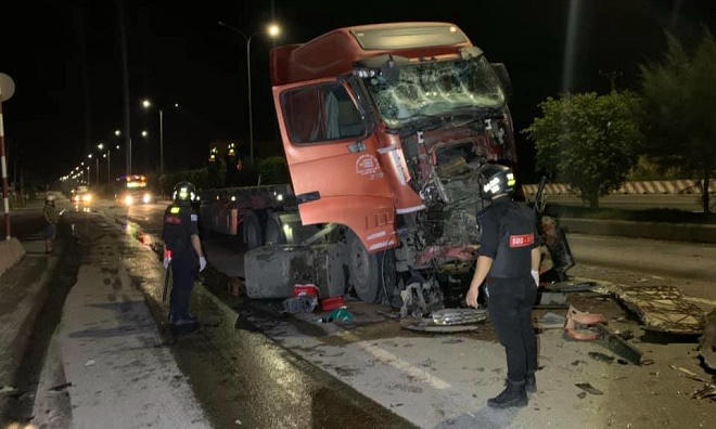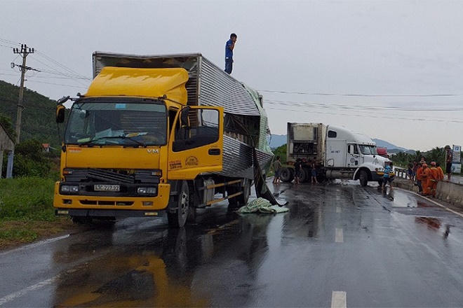 Tại Khánh Hòa, khoảng 11h30, xe đầu kéo mang biển kiểm soát 51C-319xx kéo theo rơ-moóc 51R-092xx lưu hành hướng Nam - Bắc. Khi xe đi tới Km1404+600 Quốc lộ 1 thuộc xã Vạn Hưng (huyện Vạn Ninh đã tông vào ô tô tải BKS 43C-227xx lưu thông cùng chiều.