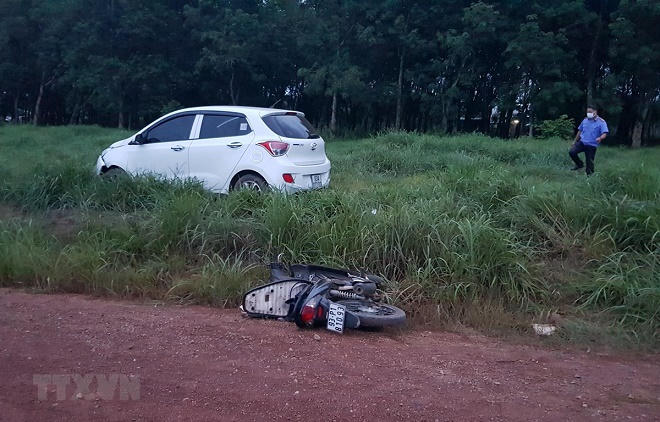 Khi đến đoạn khu phố 2, phường Tiến Thành, do không làm chủ tốc độ, chiếc ôtô đã đâm vào xe máy BKS 93P1-810xx do ông Nguyễn Xuân Tứ (42 tuổi, trú xã Tiến Thành, TP Đồng Xoài) điều khiển. Thời điểm này, trên xe ông Tứ chở phía sau hai con nhỏ là Nguyễn Thị Ngọc Q (10 tuổi) và Nguyễn Quý T (7 tuổi).