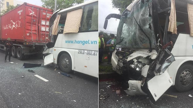 Tông vào đuôi xe container, tài xế xe chở công nhân mắc kẹt trên ghế lái