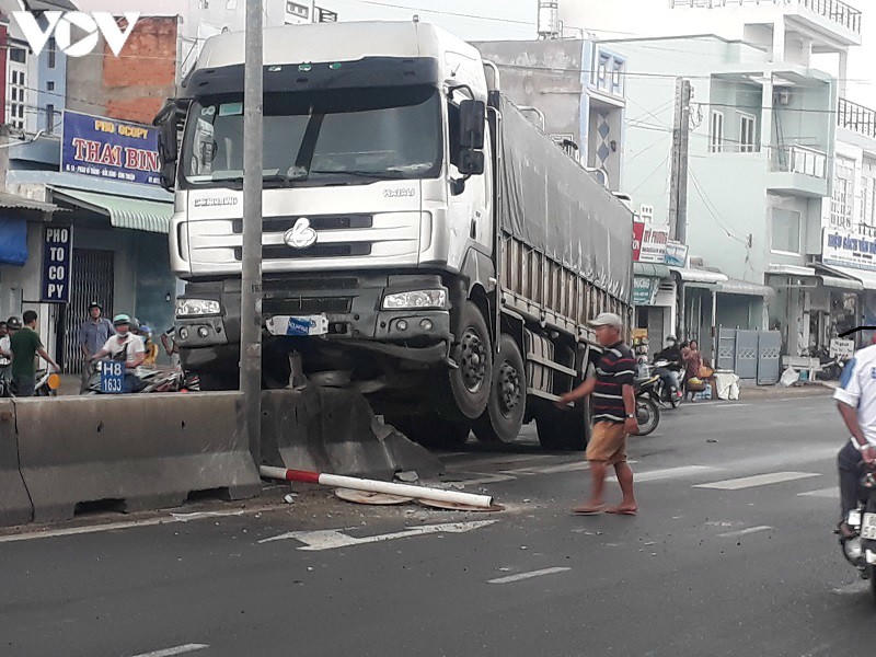 Xe đang chạy đến ngã ba Hòa Đa (thuộc địa phận xã Phan Rí Thành) thì gặp một chiếc xe 2 bánh băng ngang đường. Để tránh va chạm, tài xế xe tải chủ động phanh gấp. Cú phanh gấp cùng với đường trơn do trời mưa đã kiến tài xế mất tay lái và leo lên dải phân cách tông gãy cột biển báo. May mắn không ai bị thương.