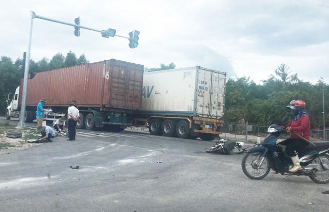 Khoảng 12h30’, xe container mang BKS 63C-110xx, kéo theo rơ-moóc mang BKS 63R-005xx (chưa rõ danh tính tài xế) chạy trên tuyến đường tránh TP Đồng Hới theo hướng Bắc-Nam. Khi đến ngã tư giao cắt với đường Phan Đình Phùng (TP Đồng Hới, tỉnh Quảng Bình) đã xảy ra va chạm với xe máy BKS: 73B1 – 332xx do anh Đặng Tiến Quang (SN 1987, ngu xã Đức Ninh, TP Đồng Hới) điều khiển .