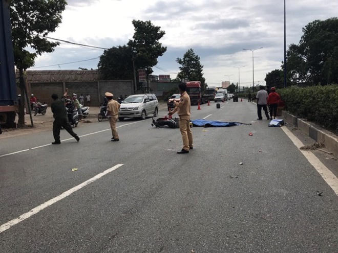Theo đó, khoảng 15h, 2 công nhân đi xe máy BKS 61G1-168xx chạy trên đường Mỹ Phước – Tân Vạn. Khi qua khu phố Tân Phú (phường Tân Bình, TP Dĩ An, tỉnh Bình Dương) thì bất ngờ va chạm với xe container BKS 51D-494xx chạy cùng chiều.