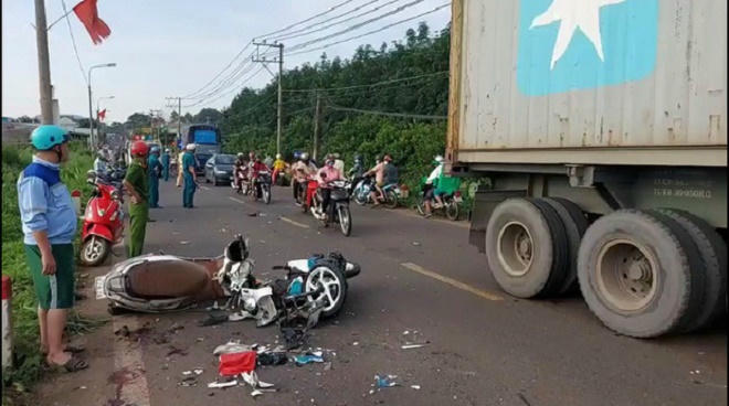 Xe container tông 2 vợ chồng đi xe máy tử vong