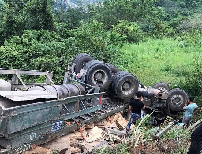 Cũng trong chiều 28/7, xe đầu kéo BKS 89C-052.23 kéo theo rơ-moóc 15R-098.17 chở ván gỗ ép di chuyển trên tuyến Quốc lộ 3 theo hướng Bắc Kạn - Cao Bằng, khi đến đoạn Đèo Gió (thuộc xã Vân Tùng, huyện Ngân Sơn, tỉnh Bắc Kạn) thì bất ngờ bị lật xuống taluy âm.