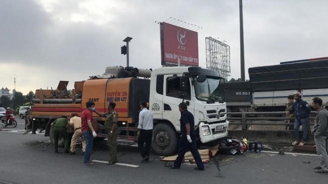 Theo đó, khoảng 6h, chị Hoàng Thị C (48 tuổi, quê Thanh Hoá) chạy xe máy chở con gái tên Nguyễn Thị Kim Ng (2 tuổi) trên quốc lộ 1 hướng Đồng Nai đi TP HCM. Khi đến chân cầu vượt ngã ba Tân Vạn, xe máy bất ngờ va chạm với xe bơm bê tông biển số 61C-415xx chạy cùng chiều phía sau.