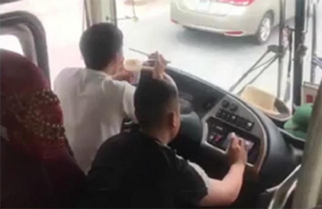 Tài xế ăn mì khi lái xe bị phạt