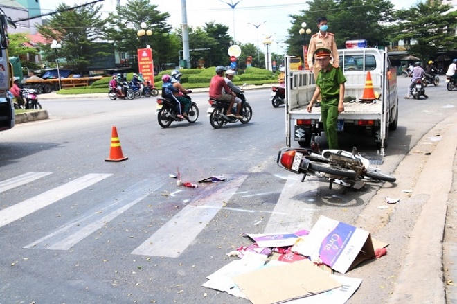 Khi đến địa điểm trên đã xảy ra va chạm với xe máy BKS 85D1-027xx đang lưu thông cùng chiều do bà Võ Thị Bưởi (ngụ xã Phước Thuận, huyện Ninh Phước) điều khiển chở theo sau bà Tô Thị Hồng.