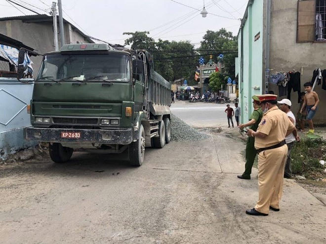 Cùng thời gian trên, tổ công tác đặc biệt của Phòng CSGT Công an tỉnh Đồng Nai tuần tra trên tuyến quốc lộ 1K. Tại đây, tổ công tác phát hiện xe ben biển số đỏ KP-2630 có nhiều dấu hiệu bất thường, chở đá quá tải nên nên yêu cầu dừng xe kiểm tra.
