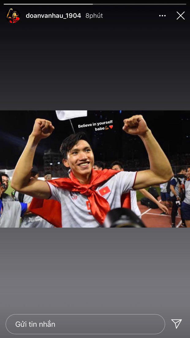 Cụ thể, nam cầu thủ đã chia sẻ 1 khoảnh khắc anh cười cực tươi tắn kèm lời nhắn nhủ "ai kia": "Belive in youseft" (Hãy tin vào chính mình). Đặc biệt, Đoàn Văn Hậu còn thêm biểu tượng trái tim và cách gọi thân mật là "babe" (em yêu).