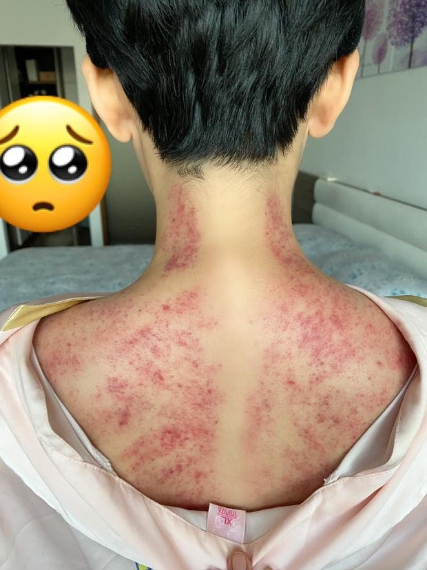 Hiền Hồ khiến fans lo lắng khi đăng ảnh tấm lưng chằng chịt vết đỏ.
