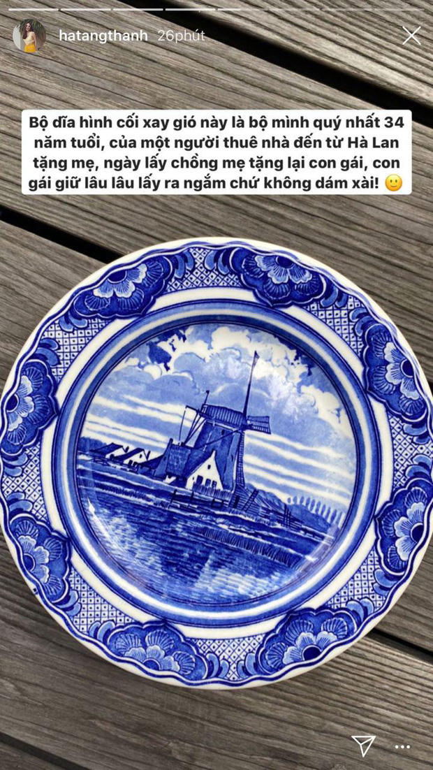 Cho đến mới đây, Hà Tăng tiếp tục gây bất ngờ khi lần đầu tiết lộ quà cưới được mẹ ruột tặng. Món quà quý đó là 1 bộ đĩa sứ (hay còn gọi là dĩa theo phương ngữ Nam Bộ) hình cối xay gió. Hà Tăng cho biết đây là món quà mẹ cô nhận từ một người bạn đến từ Hà Lan, sau đó bà tặng lại cho "ngọc nữ" khi con về nhà chồng. "Đây là món quà mình quý suốt 34 năm qua, con gái giữ lấy ra ngắm chứ không dám xài", Hà Tăng chia sẻ.