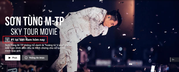 SKY TOUR Movie - phim tài liệu về dự án âm nhạc cùng tên của Sơn Tùng M-TP chính thức ra mắt trên nền tảng xem phim trực tuyến Netflix từ ngày 2/9 vừa qua. Được biết đây không chỉ là lần đầu tiên một phim tài liệu âm nhạc của Việt Nam được phát hành tại 190 quốc gia mà còn là phim tài liệu âm nhạc thứ hai của châu Á được Netflix cho phép phát sóng trên toàn cầu, sau sản phẩm đến từ nhóm Arashi của Nhật Bản. Với sức ảnh hưởng mạnh mẽ của Sơn Tùng tại Việt Nam, phim nhanh chóng lọt top 1 trending Netflix quê nhà nhưng đáng ngạc nhiên hơn khi sau 24h phát hành, phim còn leo top trending now và top phổ biến trên toàn thế giới.
