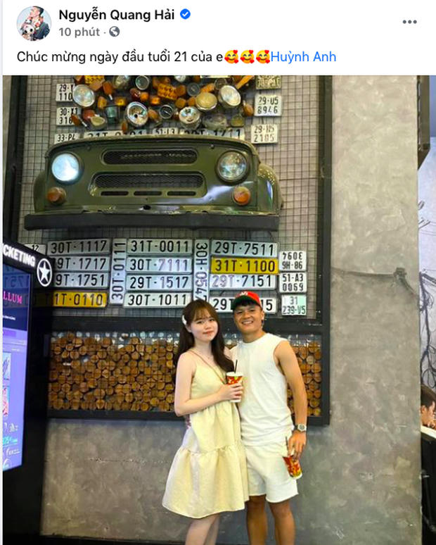 Nếu như sáng 6/9 Huỳnh Anh chỉ chia sẻ khoảnh khắc thổi nến cùng mẹ ruột Quang Hải, thì cách đây ít phút, nam cầu thủ cũng công khai ảnh thân mật bên bạn gái. Quang Hải nhắn lời ngọt ngào cho Huỳnh Anh: "Mừng ngày đầu tuổi 21 của em". Không chỉ thế, nam cầu thủ còn công khai đưa tay ôm eo người ấy cực tình tứ. Qua chi tiết này, cả hai đã thể hiện rõ ràng mối quan hệ mặn nồng và hạnh phúc sau khi vướng phải lùm xùm chia tay.