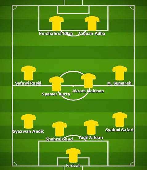 Bên kia chiến tuyến, Malaysia đón chào sự trở lại của ba trụ cột dưới hậu tuyến là trung vệ Aidil Zafuan, hậu vệ cánh phải Syahmi và hậu vệ cánh trái Syazwan. Các vị trí khác bên phía đội khác nhiều khả năng HLV Tan Cheng Hoe vẫn giữ nguyên, với cặp tiền vệ trung tâm cơ bắp Kutty Abba - Akram Mahinan, cùng hai chân sút đá cao nhất là Zaquan Adha và Norshahrul Idlan Talaha.