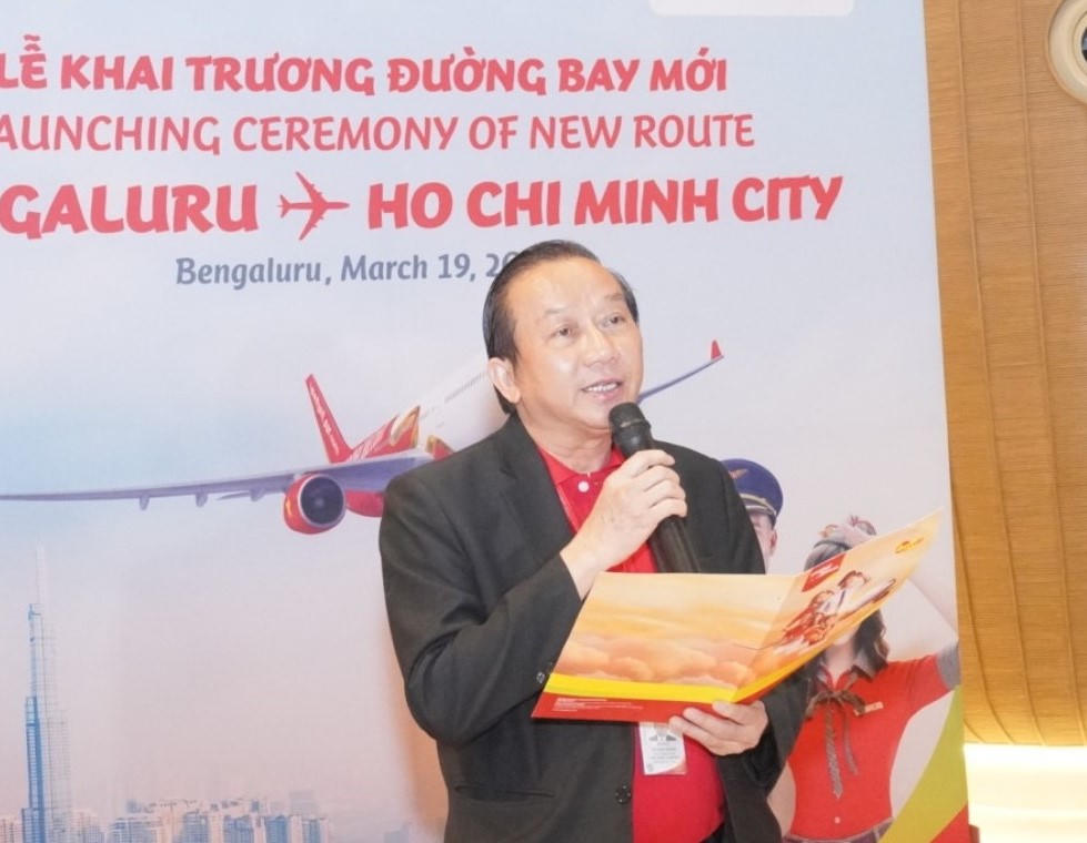 Ông Đỗ Xuân Quang - Phó Tổng giám đốc Vietjet công bố khai trương hai đường bay mới Bengaluru, Hyderabad - Tp. Hồ Chí Minh |