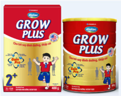 Sản phẩm Dielac Grow Plus của Vinamilk với công thức cao năng lượng, bổ sung vitamin và khoáng chất đáp ứng 100% nhu cầu dinh dưỡng RNI được đề nghị bởi tổ chức quốc tế FAO/WHO, đặc chế cho trẻ suy dinh dưỡng thấp còi, giúp trẻ bắt kịp đà tăng trưởng
