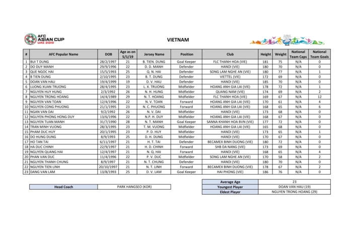 Trong thời gian còn lại, nhà cầm quân người Hàn Quốc sẽ tiếp tục theo dõi phong độ và sự thể hiện của các cầu thủ để chốt lại danh sách chính thức 23 cầu thủ vào thời điểm 1 ngày trước trận ra quân tại VCK Asian Cup 2019.