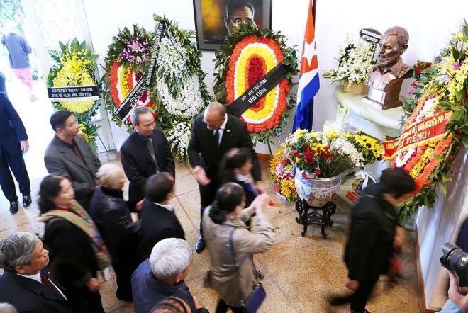 Nhiều giờ trước lúc Đại sứ quán Cuba mở cửa, đã có hàng trăm cựu lưu học sinh Việt Nam tại Cuba, các thành viên Liên hiệp các tổ chức hữu nghị và Hội Việt Nam - Cuba tập trung xếp hàng trước cổng sứ quán để chuẩn bị vào viếng. Dòng người tưởng niệm tiếp tục nối dài trong những ngày tiếp theo. Đại sứ Cuba đã ra tận nơi đón từng đoàn và người dân đến viếng.