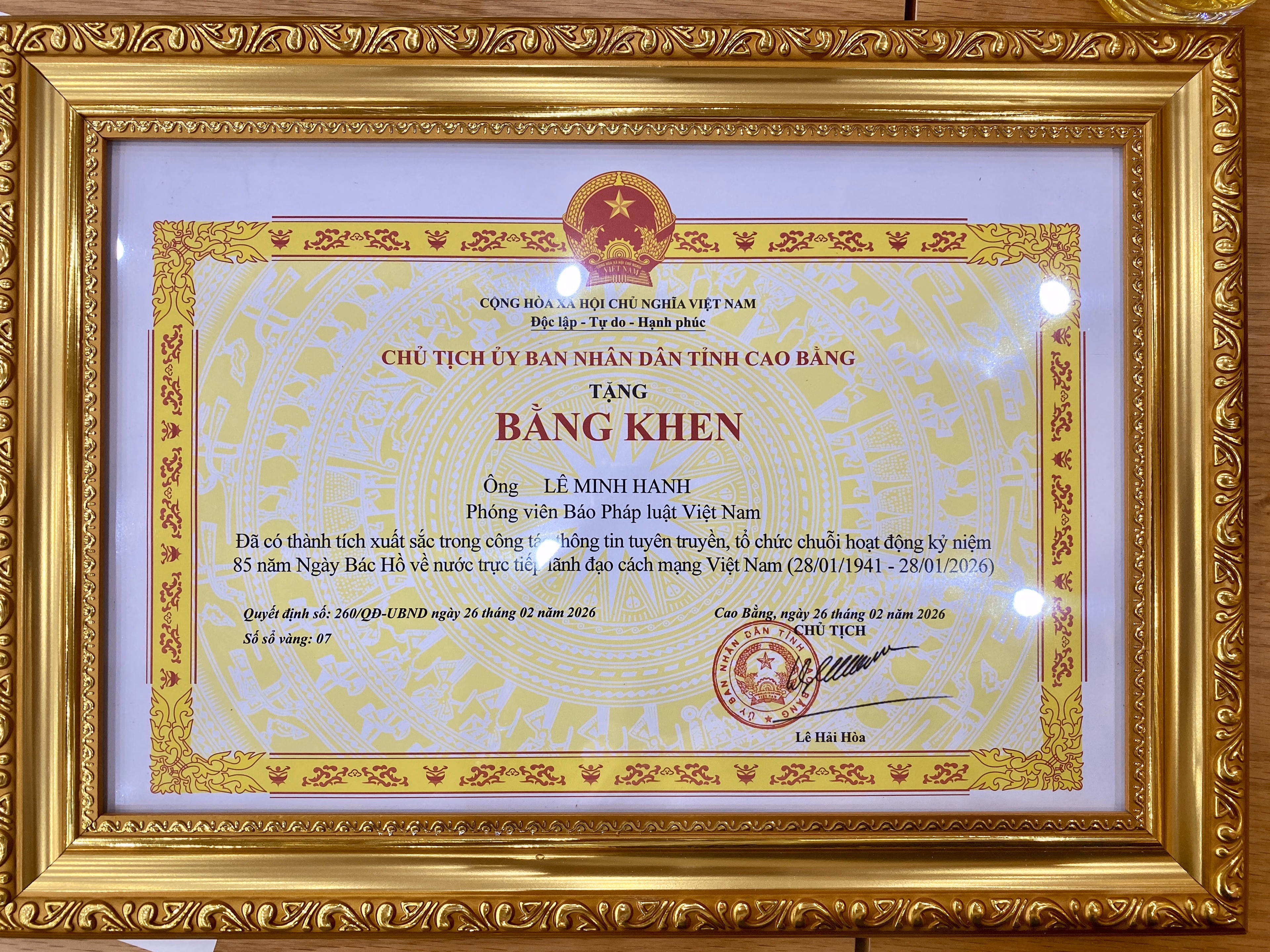 Bằng khen của UBND tỉnh Cao Bằng trao cho các cơ quan thông tấn, báo chí, trong đó có Báo Pháp luật Việt Nam, là lời gửi gắm, sự tin tưởng vào một sự phối hợp chặt chẽ hơn nữa trong tương lai, những người làm báo sẽ tiếp tục viết tiếp câu chuyện về mảnh đất Cao Bằng, nơi mạch nguồn cách mạng.