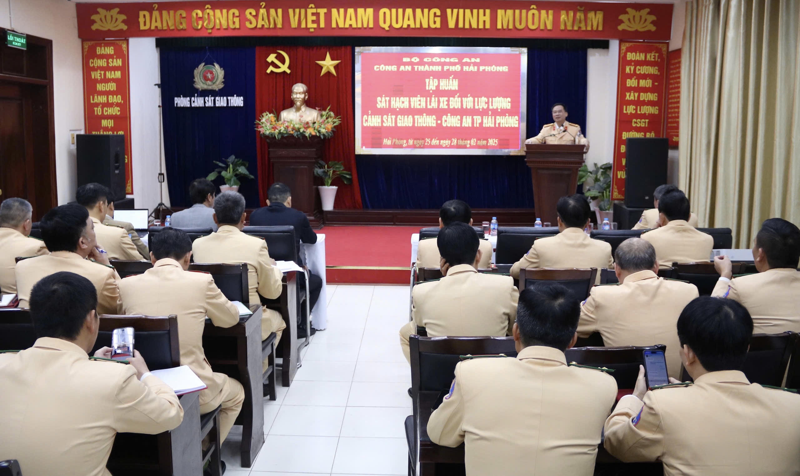 Phòng Cảnh sát Giao thông tổ chức tập huấn sát hạch viên lái xe đối với lực lượng cảnh sát giao thông. |