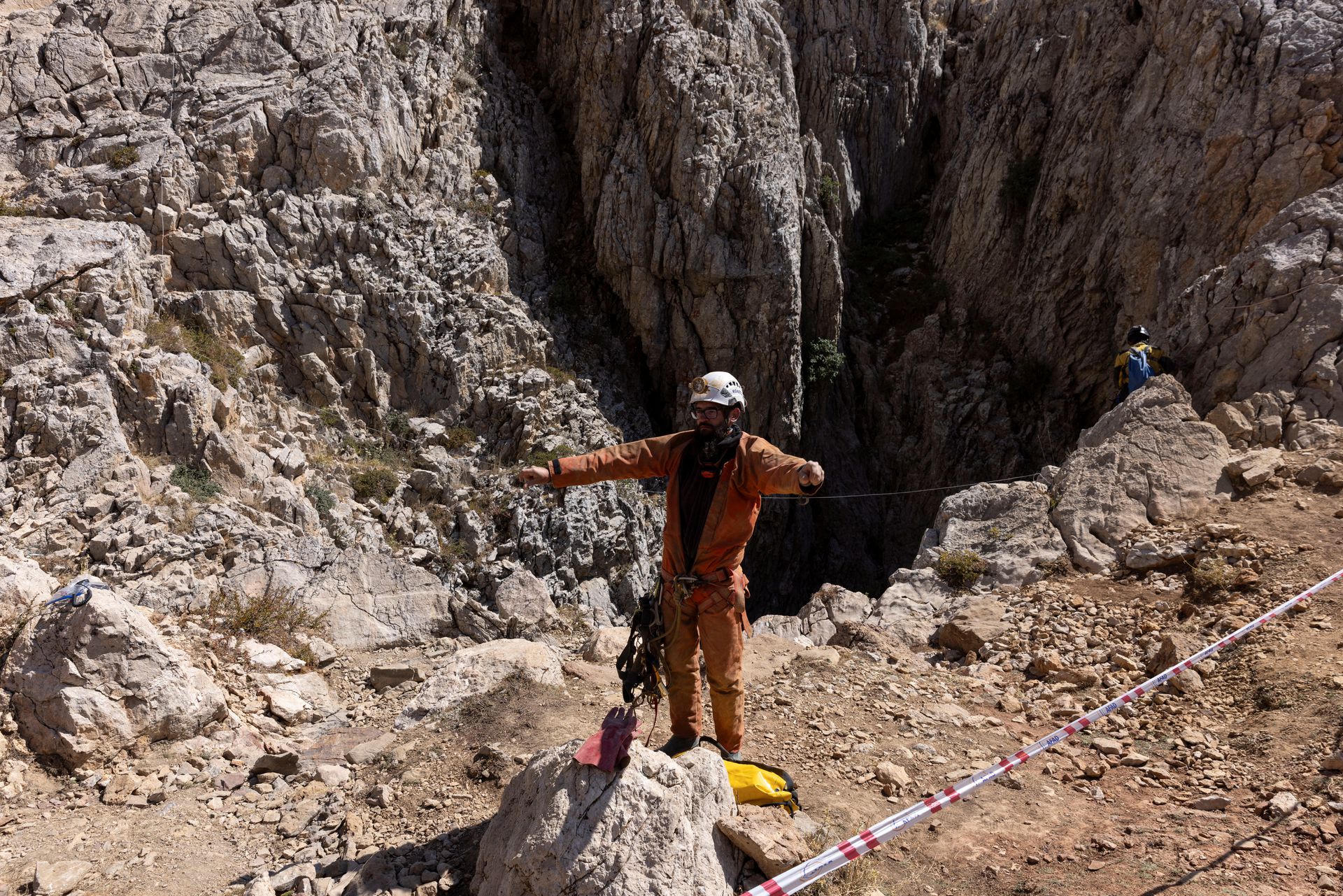 Nhà thám hiểm người Mỹ Mark Dickey (40 tuổi) đã ngã bệnh trong lúc tham gia chuyến thám hiểm quốc tế tại hang Morca ở vùng núi Taurus của tỉnh Mersin vào ngày 7/9. Anh bị mắc kẹt ở độ sâu 1.040 mét và không thể tự lên miệng hang. Ảnh: Reuters.
