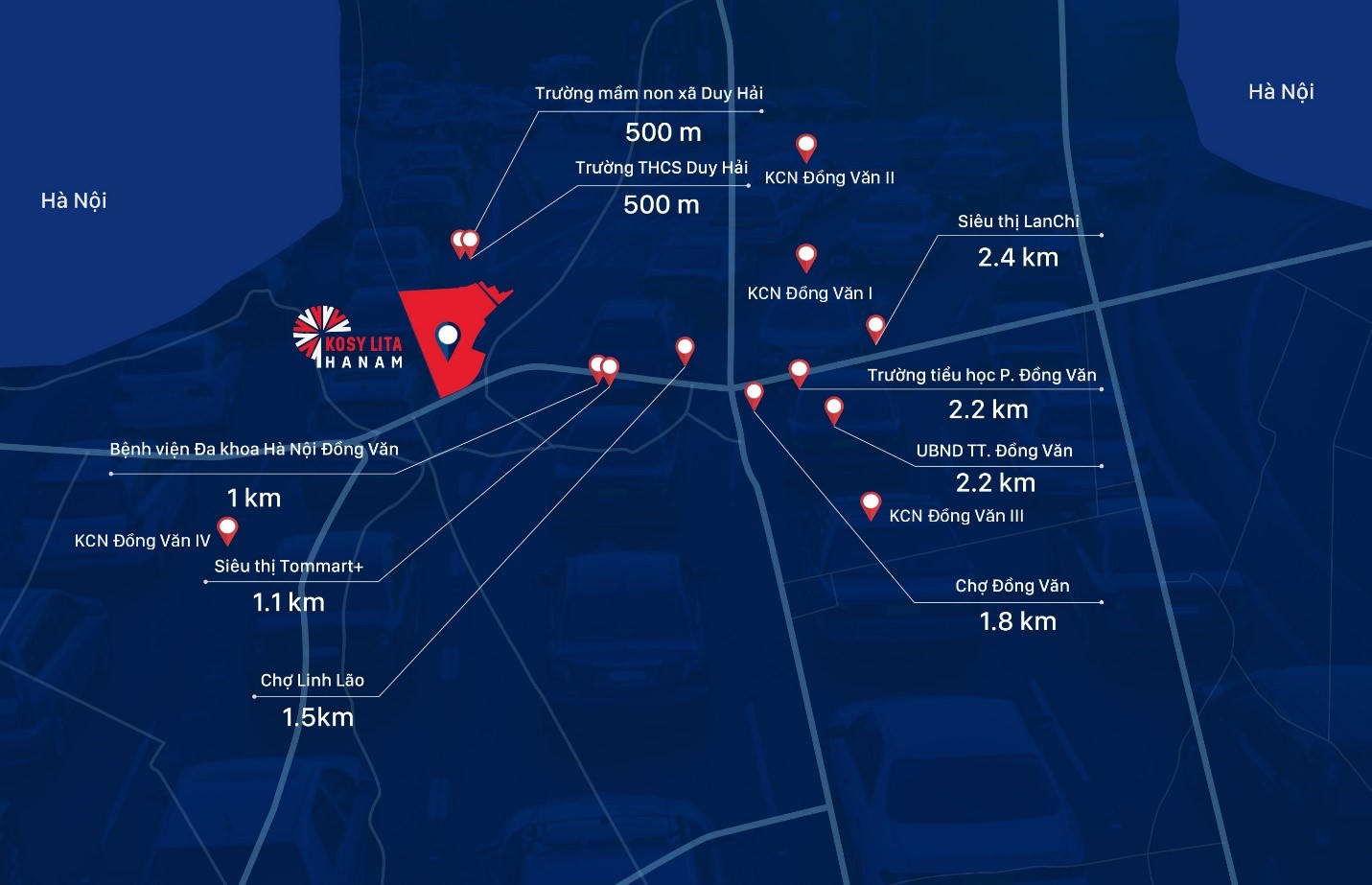 Hơn nữa, từ shophouse Kosy Lita Ha Nam, cư dân có thể di chuyển đến các tỉnh miền Bắc thông qua các trục đường quốc lộ lớn như: Quốc lộ 38B đi Hưng Yên, Quốc lộ 1 đi Ninh Bình, Quốc lộ 21A đi Nam Định, Hòa Bình…